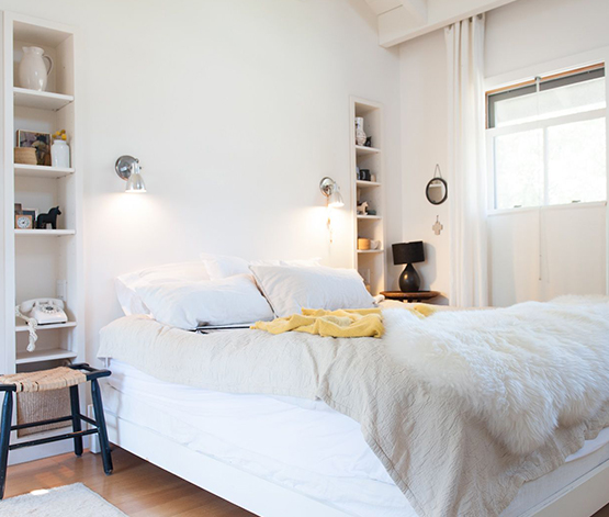 Here’s more of a Scandinavian rustic chic design to use if you want to get a little more creative with the attic space. Added rustic rafters and textured wood on the ceiling set the rustic tone. However, the white walls keep the whole space looking chic.